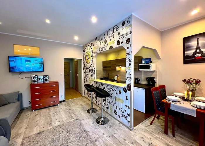 Pełnowymiarowa kuchnia obejmuje kuchenkę mikrofalową, czajnik elektryczny i lodówkę, a także urządzenie do parzenia kawy/herbaty dla komfortu gości. Odległość od lotniska Wrocław im. Mikołaja Kopernika wynosi 130 km, a od dworca autobusowego Kopa - 150 metrów. Zapewnienie możliwości dla badmintona zwiększy wrażenia gości.